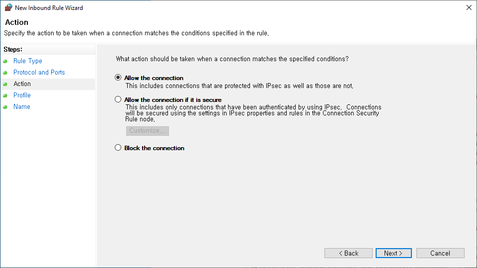 - Select Allow the connection.
