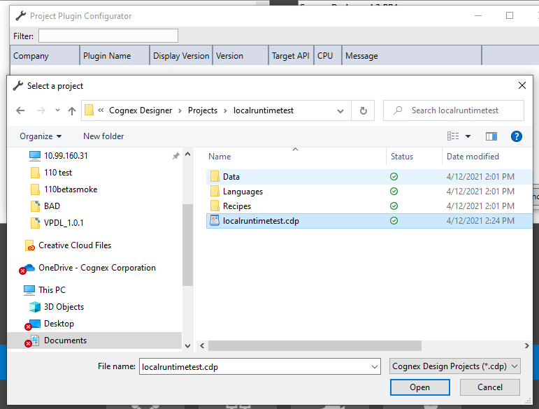 1. Enable VisionPro Deep Learning Runtime plugin using Project Plugin Configurator.