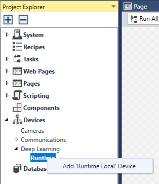In the Designer, I cannot find Device > Deep Learning > Runtime > LocalRuntime after creating a new Designer project.