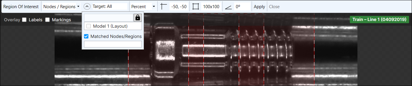 The Target field will display the filter being applied to generate views. You can then adjust the ROI to fit the area you want to inspect.