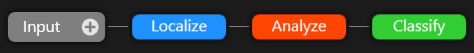 The location output by the Blue Locate tool is used by the Red Analyze Tool to orient and create its view, allowing the detection analysis to be performed in the same area of the image, based on the node model output by the Blue Locate tool. Finally, the Green Classify Tool is used to classify the output of the Red Analyze tool, based on the classification criteria established for the Green Classify tool.