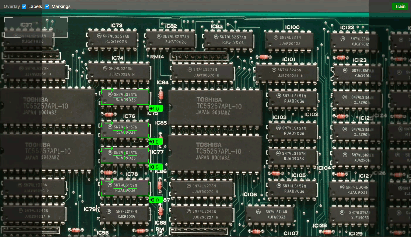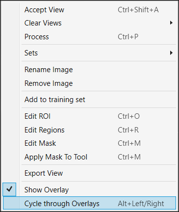 For each tool, there is a slightly different process, but the principle is the same. Once Labeling is completed, you will be ready to train the tool, and examine the Markings that the tool provides. You can toggle the display of labels and markings by either using the Alt + Left arrow and Alt + Right arrow keys, or from the right-click menu in the image.