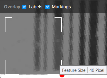 The indicator graphic can be dragged within the image, allowing you to size it based on the characters in the image. In addition, the indicator can be re-sized by dragging the re-size handle (which is displayed when hovering over the indicator). Changing the size of the indicator will also change the Feature Size parameter.