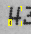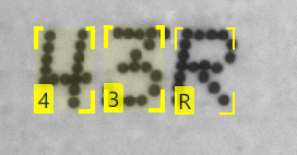 The Blue Read tool indicates the characters it found by drawing a yellow box around the character, with the decoded character value (label) in the corner. The Blue Read tool refers to this as a “feature”.