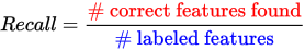 Recall is the percentage of labeled features that are not in the training set and that are correctly identified by the tool. For example, a Recall score of 90% for character “A” means that the neural network catches 90% of all appearances of " an “A" among the test data.