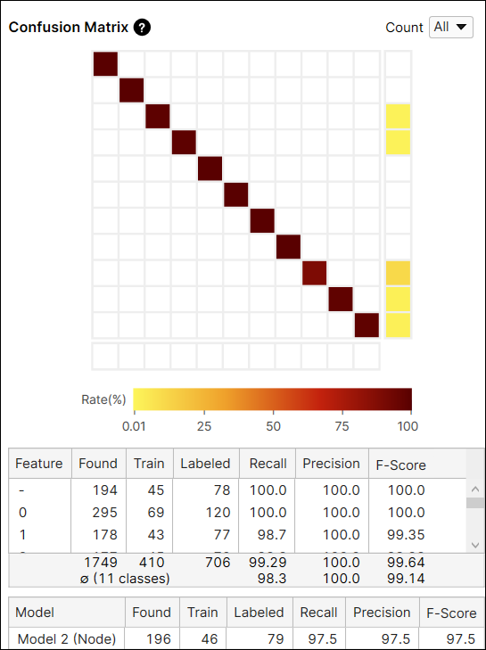 The Count option in the Confusion Matrix provides the result of the current tool calculated from all views (All), or only from the views that are not included in the training set (Untrained Views). You can switch the results between the one generated from every view including training and test images, and only from the untrained views which are the test images.