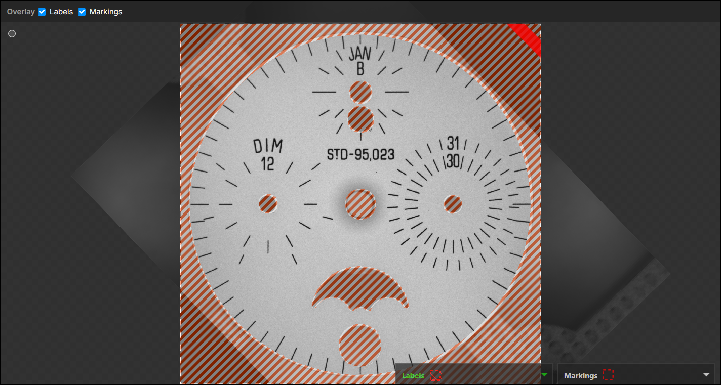 For each tool, there is a slightly different process, but the principle is the same. Once Labeling is completed, you will be ready to train the tool, and examine the Markings that the tool provides. You can toggle the display of labels and markings by either using the Alt + Left arrow and Alt + Right arrow keys, or from the right-click menu in the image.