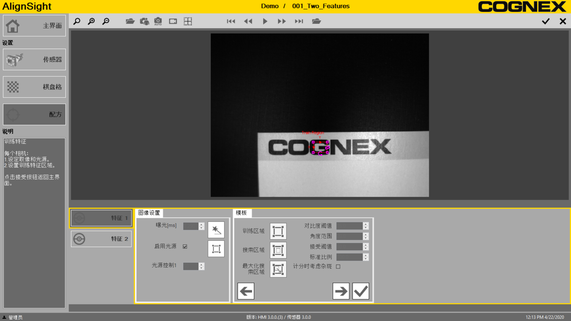 如果您已定义特征 1,请单击特征 2 并定义该特征。