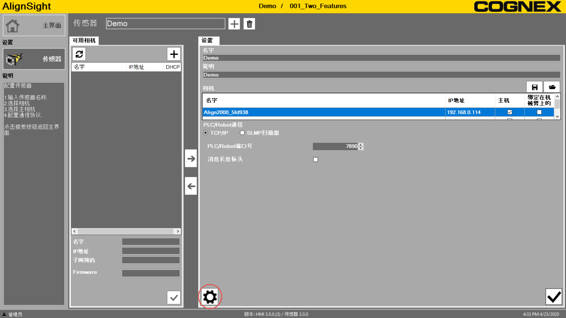 - 单击设定导航窗格中的传感器。
