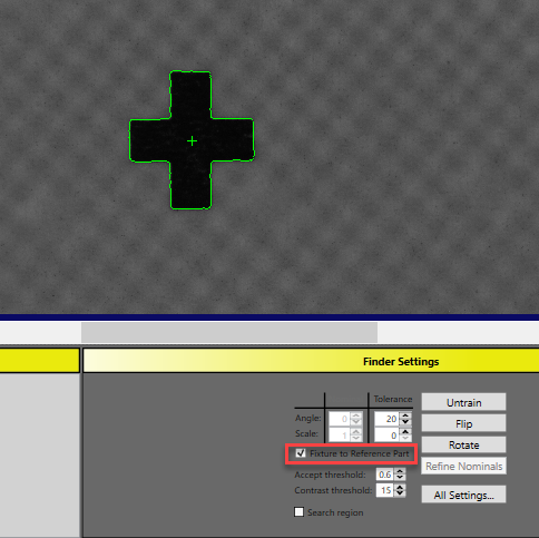 Enable Fixture to Reference Part option means current finder is only used for golden pose training, not for run time feature finding.