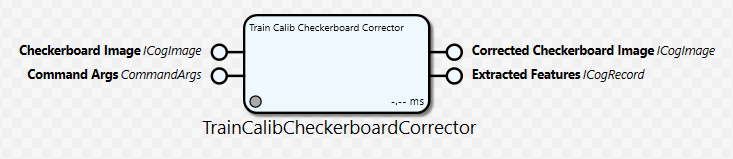 The TrainCalibCheckerboardCorrector block holds a VisionPro CogCalibCheckerboardTool. When executed, this block runs checkerboard calibration on input image and outputs the corrected image as well as feature graphics.