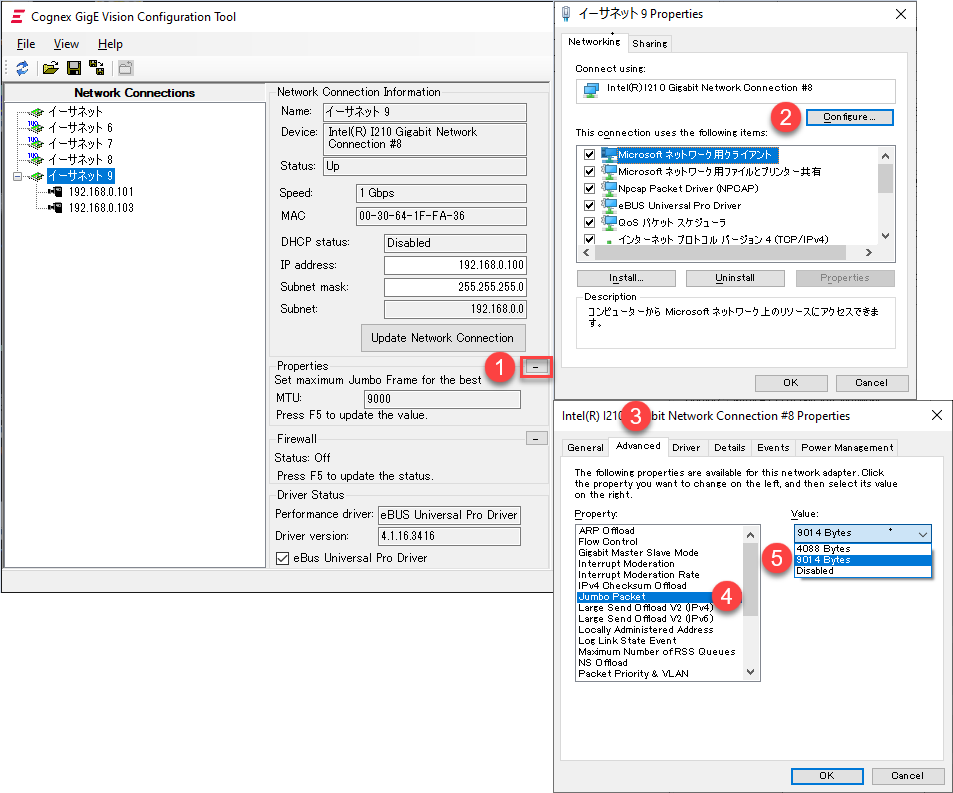 3. Set maximum Jumbo Frame value as highest in Ethernet card properties.