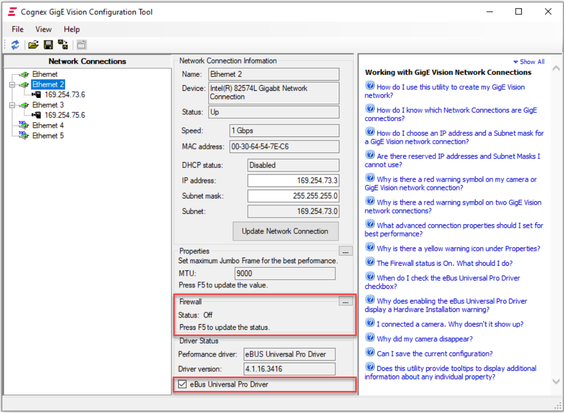 6. Double check that the firewall is off and eBus Driver is enabled.