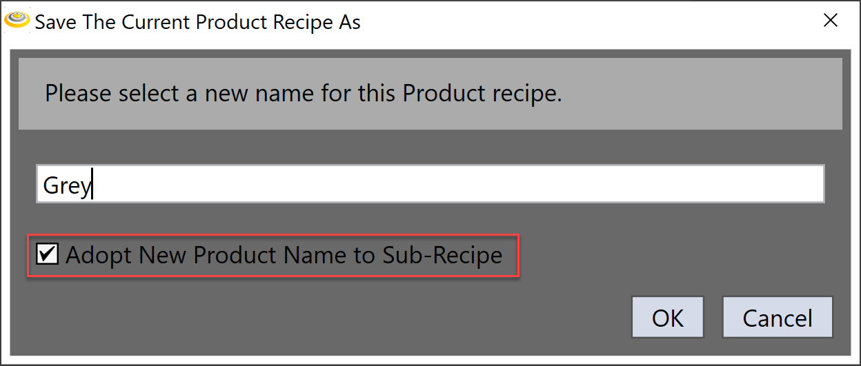 If Adopt New Product Name to Sub-Recipe is unchecked, the new product will share the sub-recipes with the current product. If it is checked, the new product will create its own sub recipes that have the same names with the new product and save all changes to them respectively.