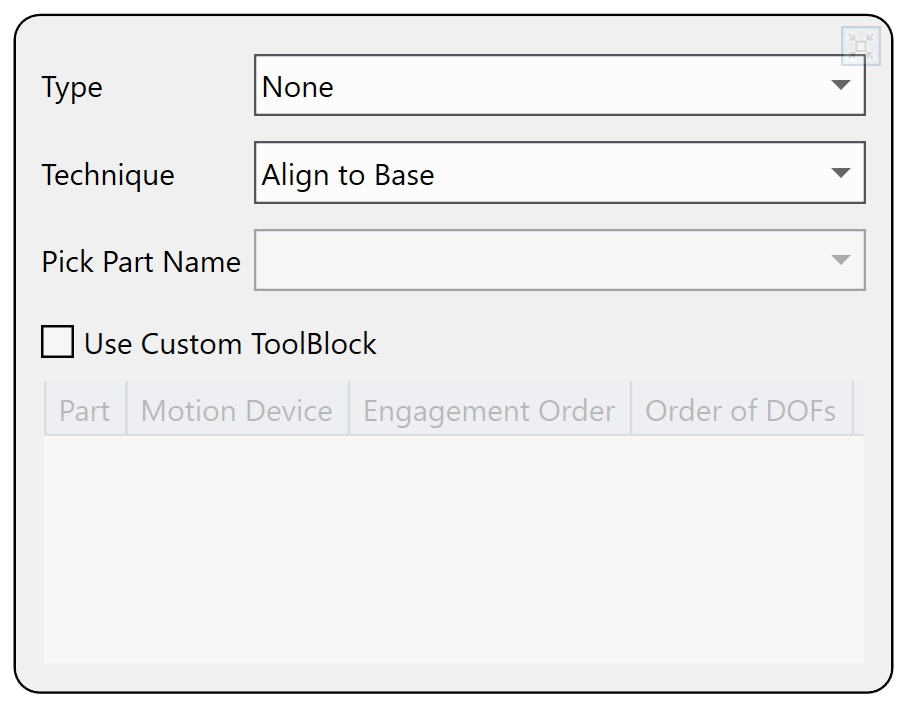 | Align To Base | Select this option when a part is attached to a motion device (such as a stage) to be aligned. After alignment pose computation, the part is moved by the motion device to the part's trained golden pose. For more information, please refer to Align to Base |