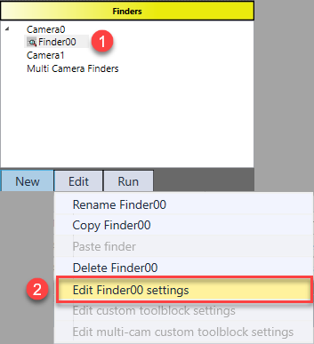 To enter edit mode, first select the finder, then choose Edit finder settings under "Edit" button.