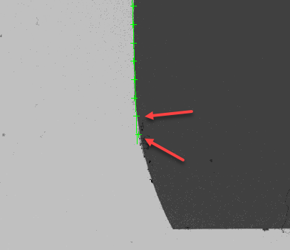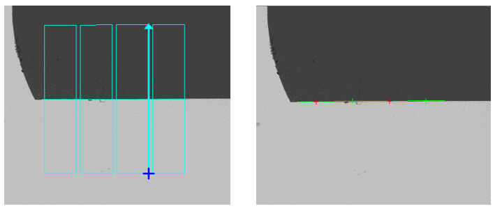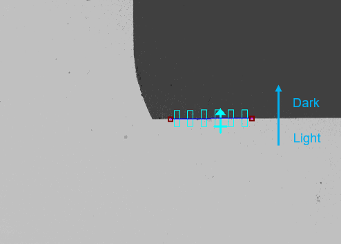 Choose whether the edge is indicated by a dark to light transition, or light to dark transition, or any polarity along the arrow direction. In the image below, polarity can be set as "Light to Dark" or "Any Polarity" . However, "Light to Dark" is better than "Any Polarity" because it resists more noises.