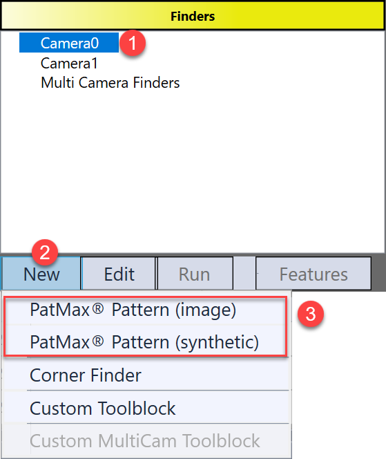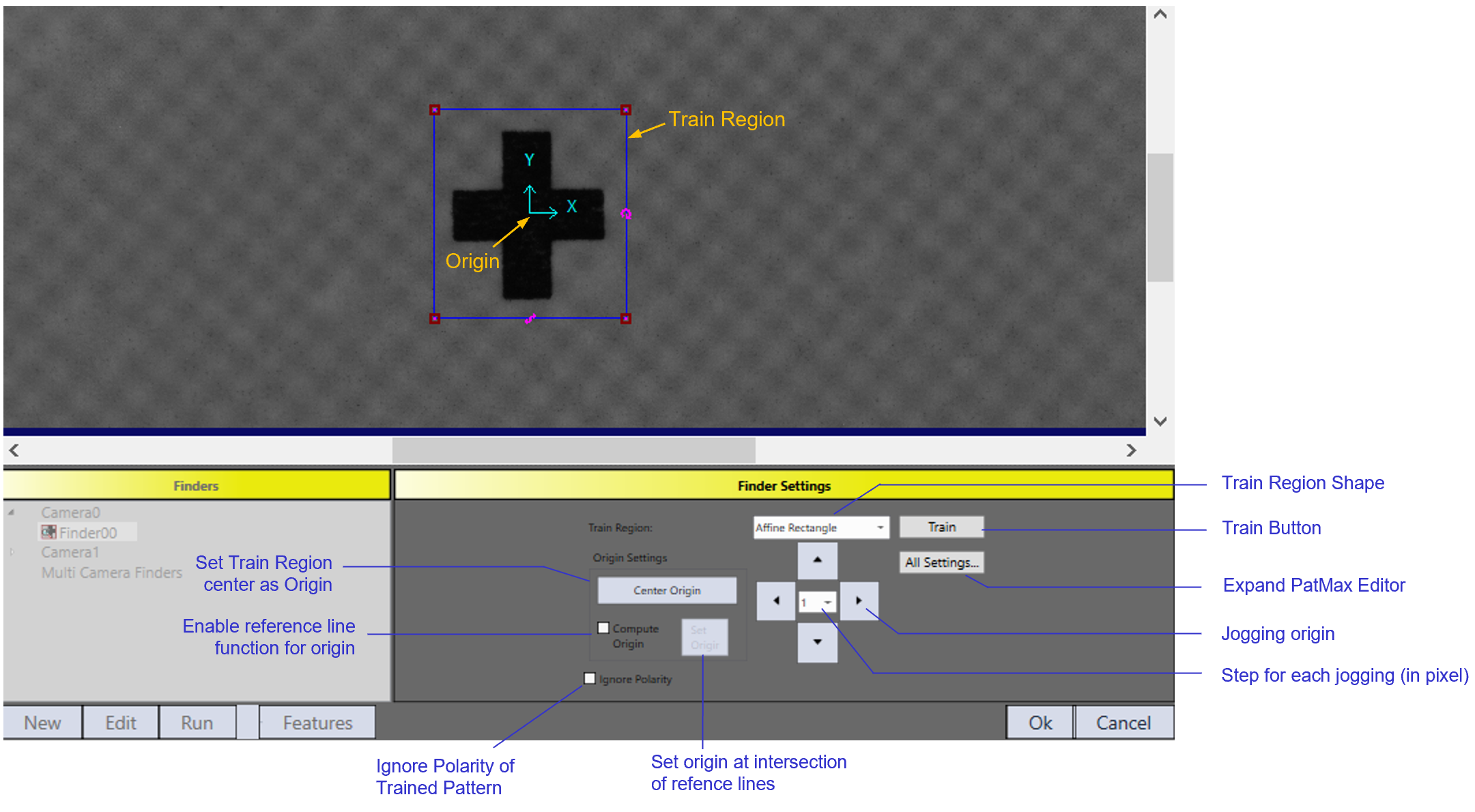 PatMax Pattern (Image) finder is a simplified PatMax tool which makes user focus on train time and run time parameter settings.