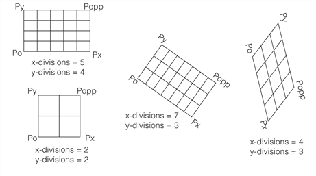 The figure below shows each of the affine rectangles shown in Affine rectangles, with the number of x-axis and y-axis divisions.