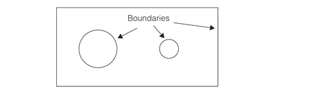 The rectangle and both circles all represent boundaries in this shape example.
