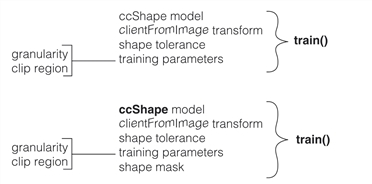 You train the tool by calling its train() method. Two overloads are provided, one that includes a shape mask and one without. See the figure below.