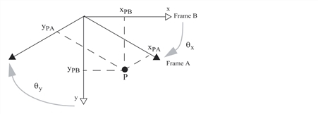 If qx and qy are the rotation angles of the x- and y- axes measured from Frame B to Frame A, the coordinates of the point P in Frame A are mapped to the ones in Frame B by: