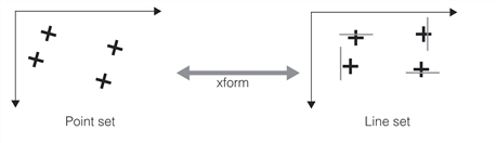 Best fit transformation relating a point set to a line set