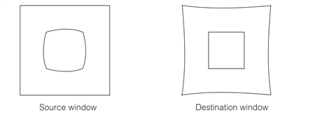 Once the tool is trained you run it on distorted images to correct the images, and then these corrected images can be used with other CVL tools such as Blob and Caliper to produce more accurate results. The figure below shows an example of a distorted image of a square, and its corrected image.