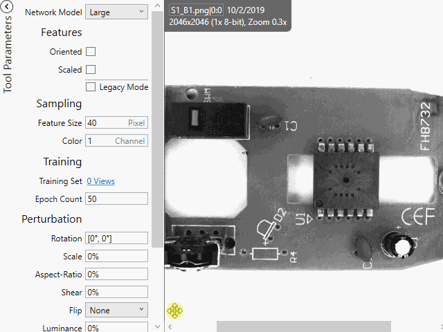 - When either uniform or non-uniform scale is enabled, the tool's feature size and aspect ratio has no impact on the operation of the tool. Instead, the range of feature sizes and aspect ratios that you label are used by the tool to perform both training and run-time sampling. However, the tool still allows you to configure the feature size.