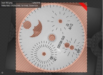 Then, during runtime, a part is presented and the tool compares it against what it was taught and finds that it deviates, it will indicate that it thinks that the part is bad.