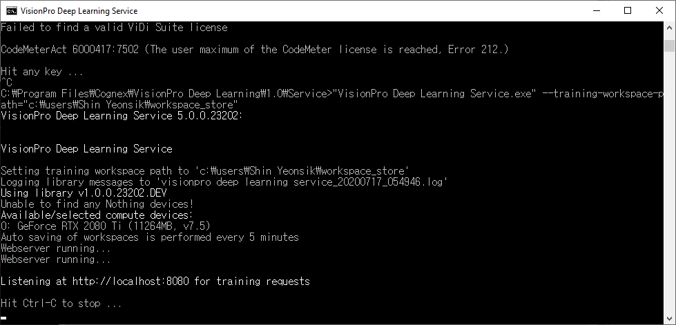 When using the client/server functionality, the VisionPro Deep Learning Service application supports active connections, is run on your server device, and must be run with administrator privileges.