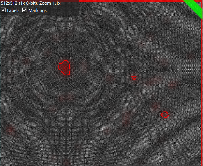未训练区域:不属于训练集的视图中的每个像素上都印有标签和标记。区域被分成缺陷(不良像素)和背景(良好像素),并据此进行标注和标记。