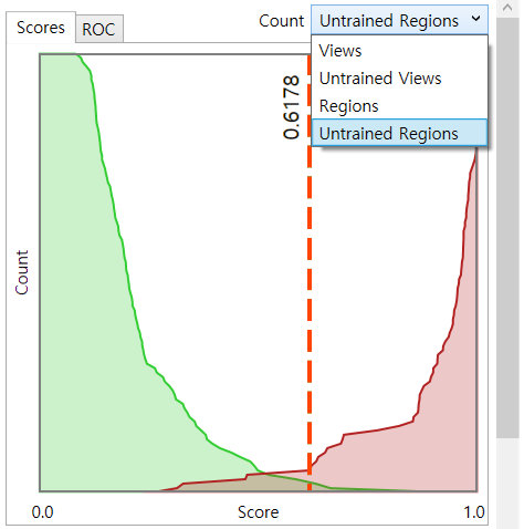 可以使用 4 种方法通过计数下拉选项填充此表:视图、未训练视图、区域和未训练区域。这些方法也用于绘制“得分”图(得分分布图)。