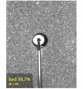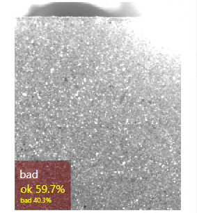 这表示图像被标注为不良(白色文本),并且工具将其标记为不良,77.2% 确定正确的标记是“不良”,22.8 的确定正确的标记是“良好”。 |