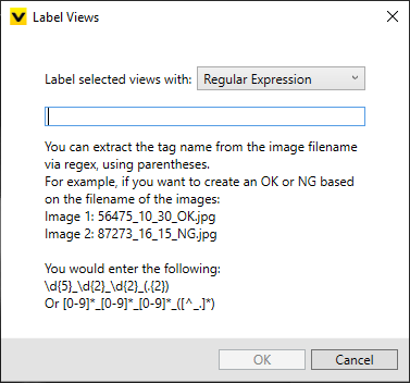在“标注视图”对话框中有两种标签分配方法。1) 可以通过指定标签来标注视图 2) 可以使用正则表达式以编程方式根据图像的文件名分配标签。
