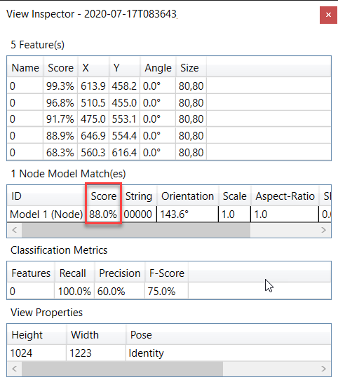 모델 매치 점수 계산에 feature들의 공간적 배열을 고려하기 때문에, 모든 feature들이 만점인 100%를 가져도 이 위치 점수가 100% 미만이면 모델 점수는 100%보다 낮을 수 있습니다.