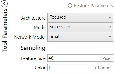 “恢复参数”按钮用于将工具参数值轻松地恢复为您在上次训练任务中选择的值。它会记住上次训练会话中使用的工具参数中的所有值。因此,如果您更改了它的任意值,现在要恢复此更改,可以单击它以回滚到上次训练中使用的工具参数值。请注意,当工具从未训练过或工具参数值的初始集没有更改时,此按钮将被禁用。