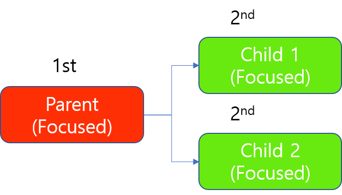 When processing, the parent always should be processed first, but since the processing of a Focused tool occupies a GPU on "image basis", 2 children can be processes simultaneously even with a single GPU, as this GPU releases its lock on the moment it finishes processing of an image that came from either of 2 children tools.