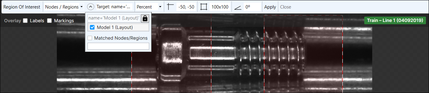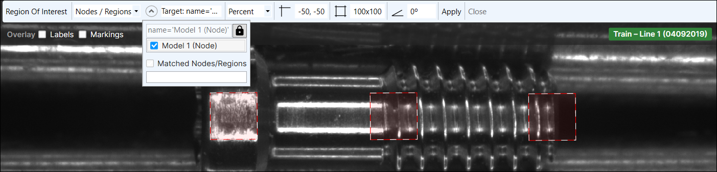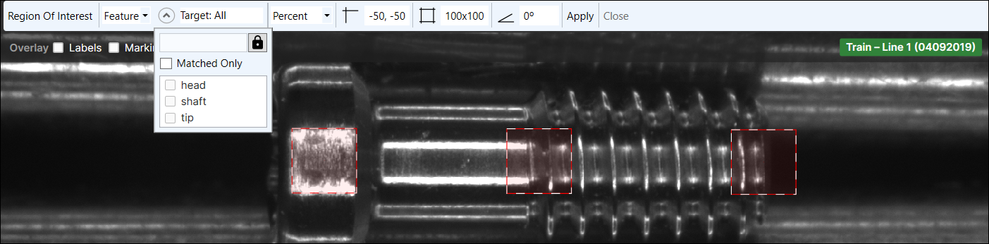 The Target field will display the filter being applied to generate views. You can then adjust the ROI to fit the area you want to inspect.