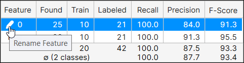 You can rename features by clicking the name, and then pressing the pencil icon to launch the Rename Feature dialog.