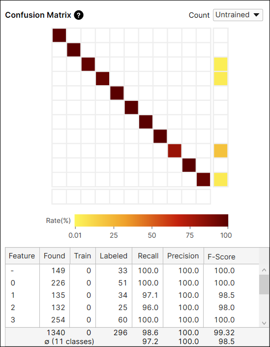 The Count option in the Confusion Matrix provides the result of the current tool calculated from all views (All), or only from the views that are not included in the training set (Untrained Views). You can switch the results between the one generated from every view including training and test images, and only from the untrained views which are the test images.