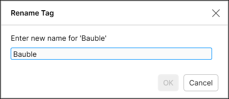 You can rename tags by clicking the name, and then pressing the pencil icon to launch the Rename Tag dialog.