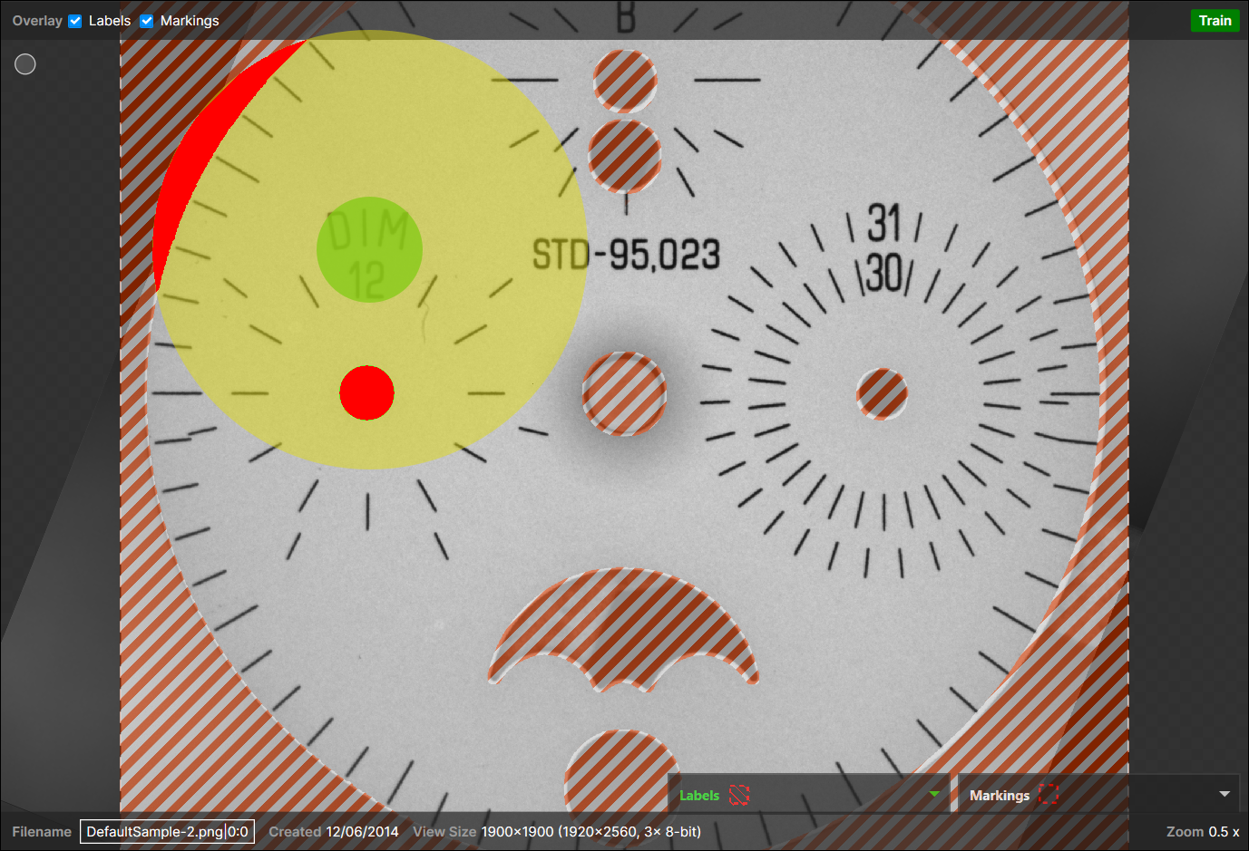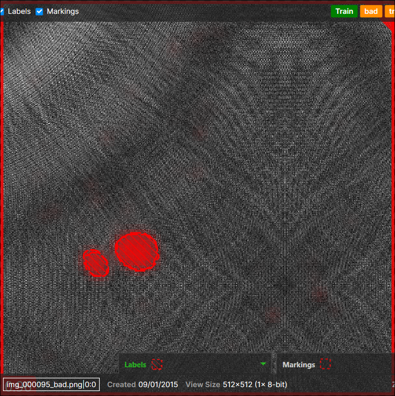 2 Defects on a View (Image File) in the Red Analyze Parent Tool
