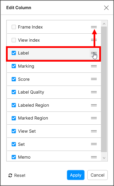 You can also change the column display order by dragging and dropping icon for each column.