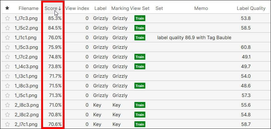 Score The score of the view. See Interpret Results for more details.