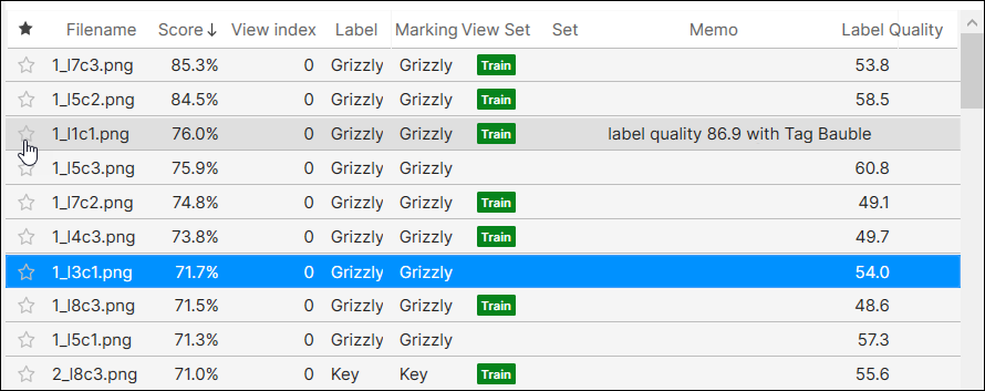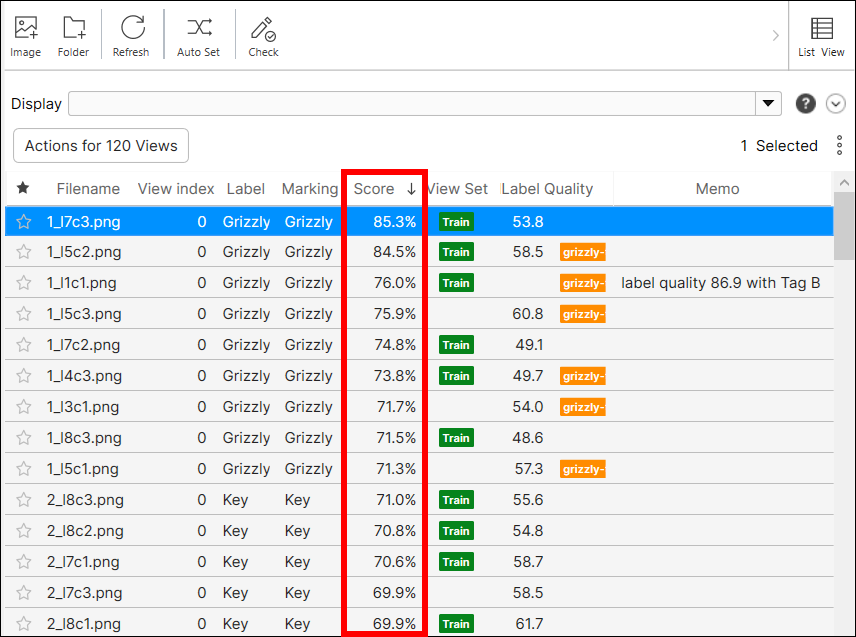 On the list mode, you can also add new images to the current VisionPro Deep Learning workspace, add images to training set, apply filters to the views displayed, sort the displayed views, or do other operations for each view.