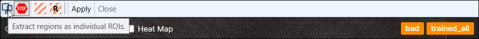 Note: For chained tools, the ROI is dependent on the preceding tool, and will be dynamic, in other words, the view will depend on the preceding tool's result. It means that if the tools are chained, the preceding tool will determine the available ROI toolbar options. For more information, refer to the VisionPro Deep Learning Tool Chains.