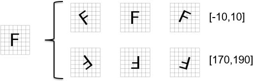 Specifies the possible orientations, defining a piece-wise uniform distribution from which a perturbing rotation angle is drawn (if set to [0°, 0°], no rotational perturbation will be used).