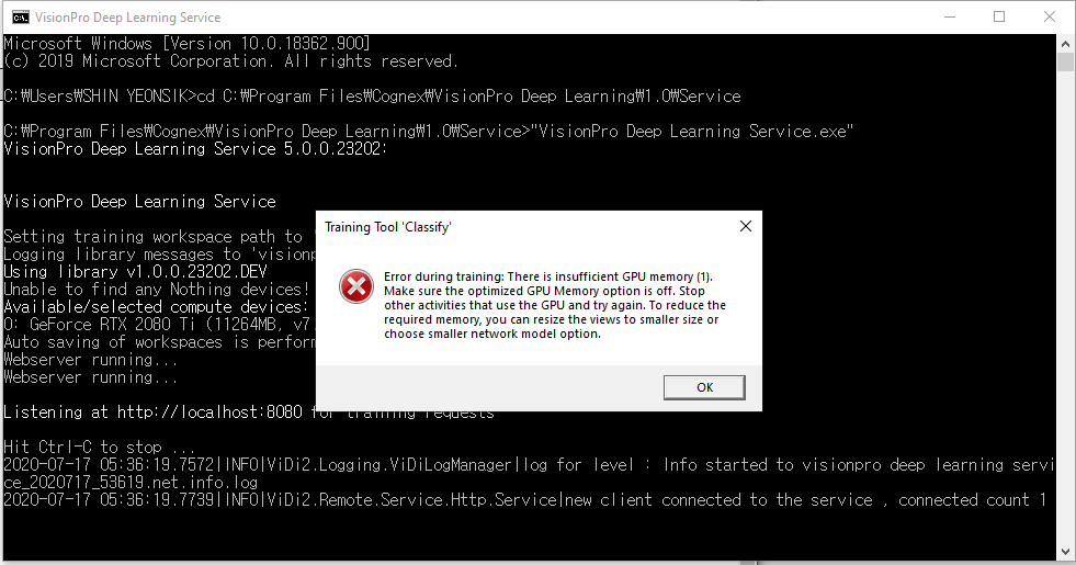 VisionPro Deep Learning Service Configuration (Server)