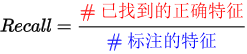 工具找到已标注特征的精确程度。精度是神经网络正确定位特征的能力。它表示为正确标记的特征除以已找到特征总数的结果。在理想情况下,高精度意味着所有已找到特征都存在于图像中。但是高精度并没有考虑到所有未找到的特征,所以仍可能是 II 类错误,即有更多未被检测到的特征。有关详细信息,请参阅 基本概念:假正值,假负值。 | |
